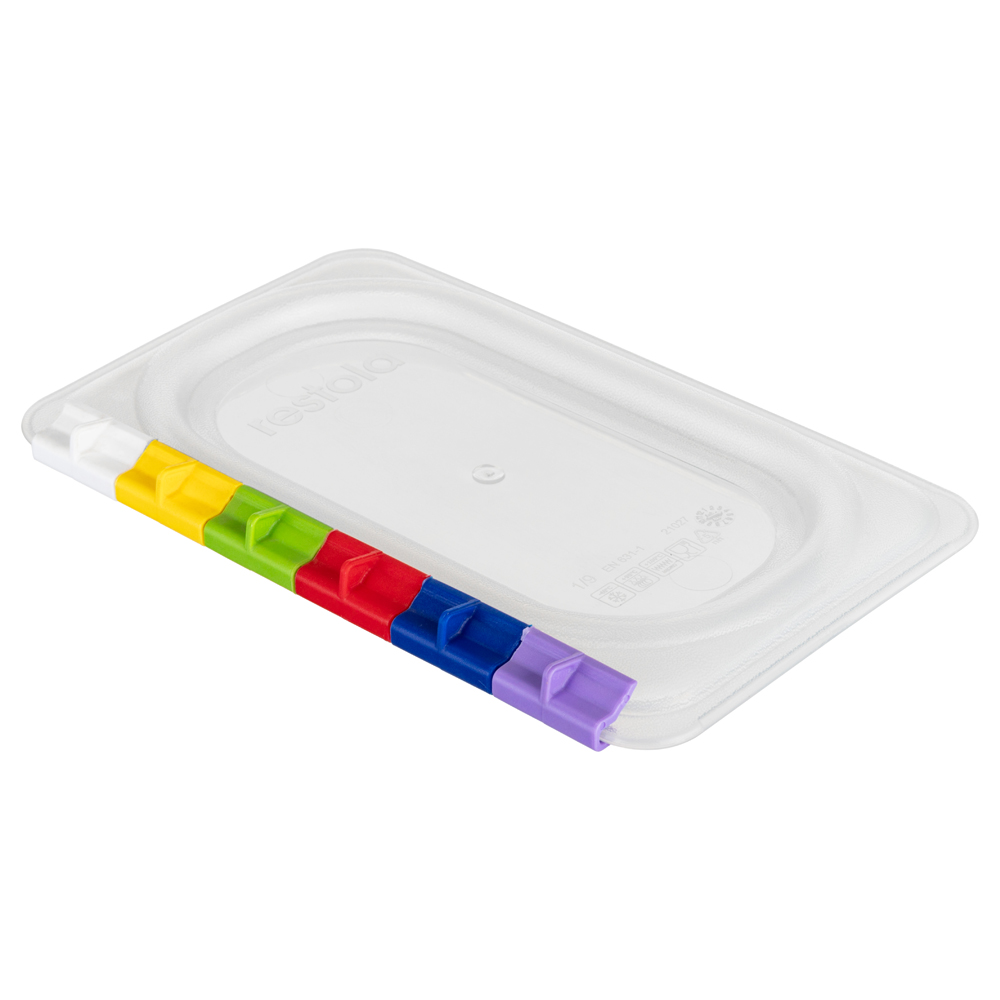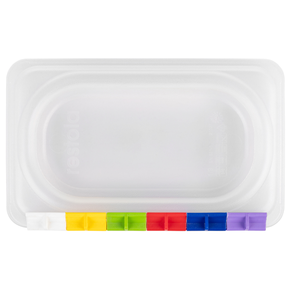 В комплекте с крышками RESTOLA для гастроемкостей из полипропилена поставляется набор из 6 цветных клипс для маркировки содержимого.