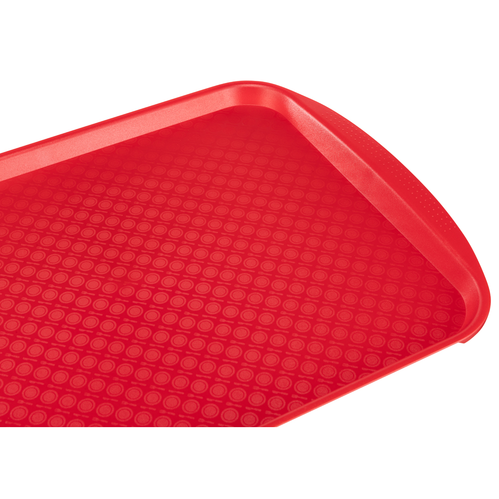Поднос сочетает в себе практичность, легкость и эргономичность, изготовлен из полистирола, отличающегося повышенной прочностью и безопасного для контакта с пищевыми продуктами, имеет текстурную рабочую поверхность для снижения скольжения посуды. Подносы из полистирола можно использовать при температуре от -5 до +75°С.