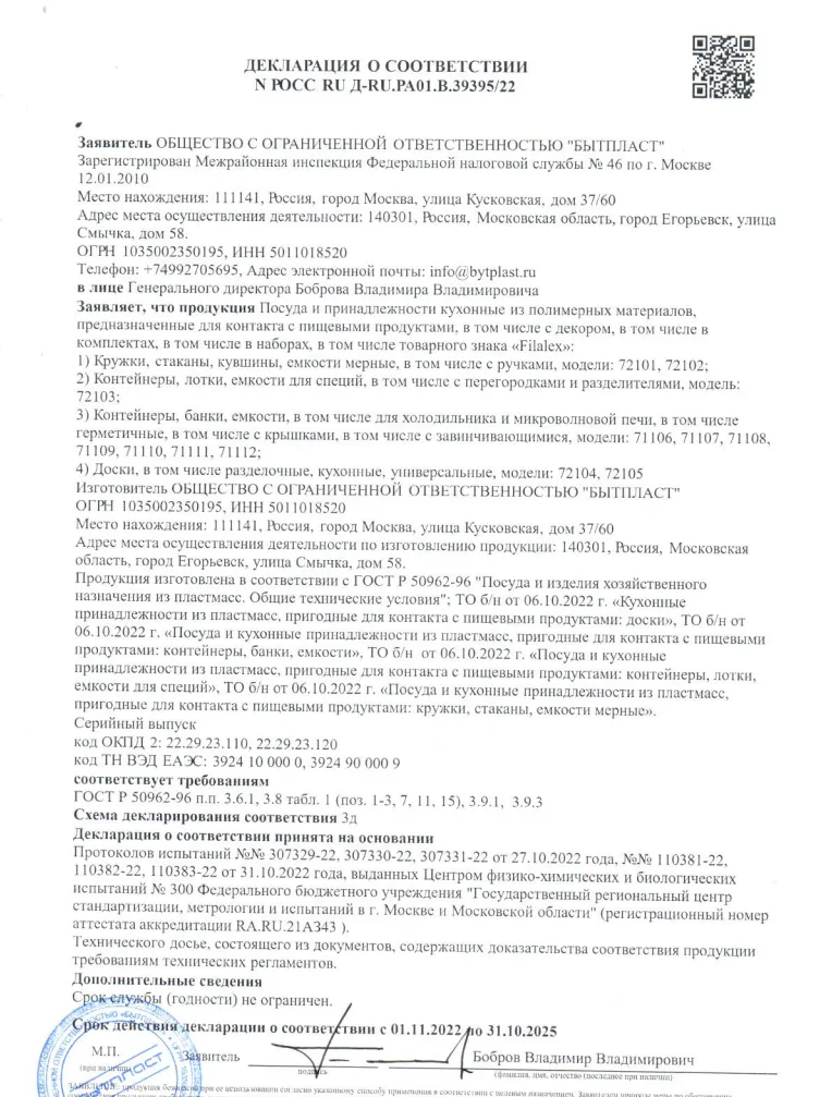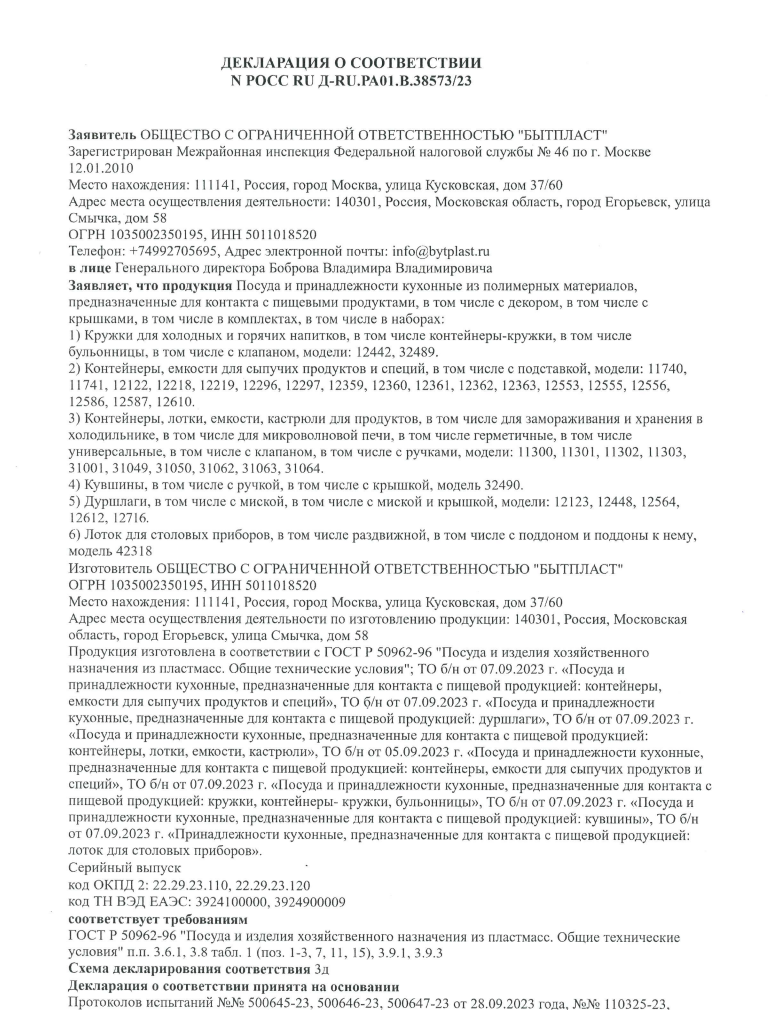 Декларация о соответствии РОСС RU Д-RU.РА01.В.46018 23 (тазы)