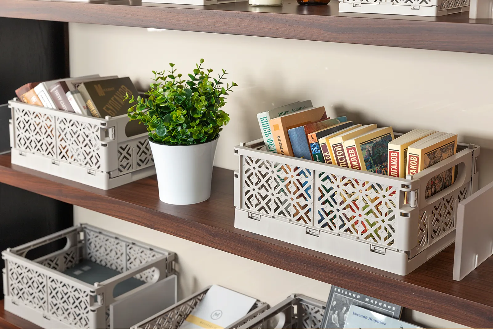 Ассортимент торговой марки включает более 70 товаров, среди которых универсальные ящики для хранения, корзины различных размеров и цветов, органайзеры, оригинальные коробки с ручками и многое другое.