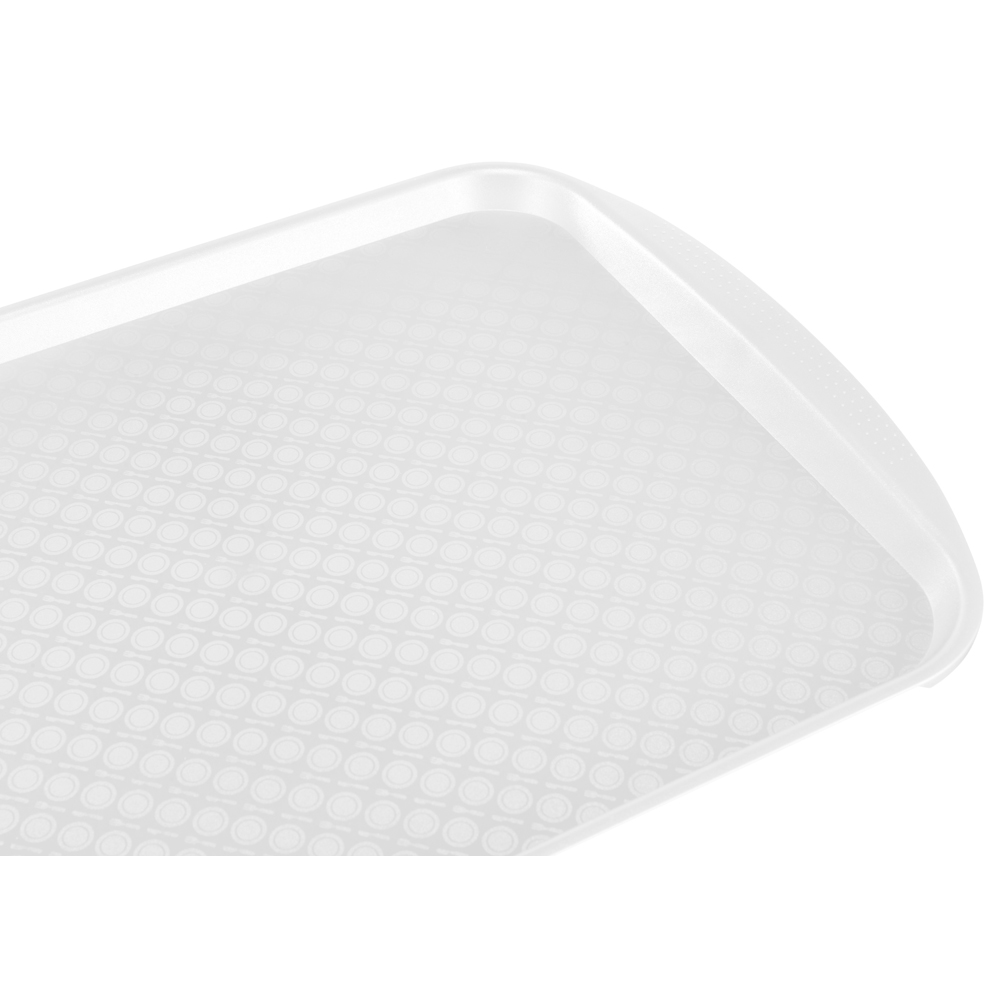 Поднос сочетает в себе практичность, легкость и эргономичность, изготовлен из полистирола, отличающегося повышенной прочностью и безопасного для контакта с пищевыми продуктами, имеет текстурную рабочую поверхность для снижения скольжения посуды. Подносы из полистирола можно использовать при температуре от -5 до +75°С.