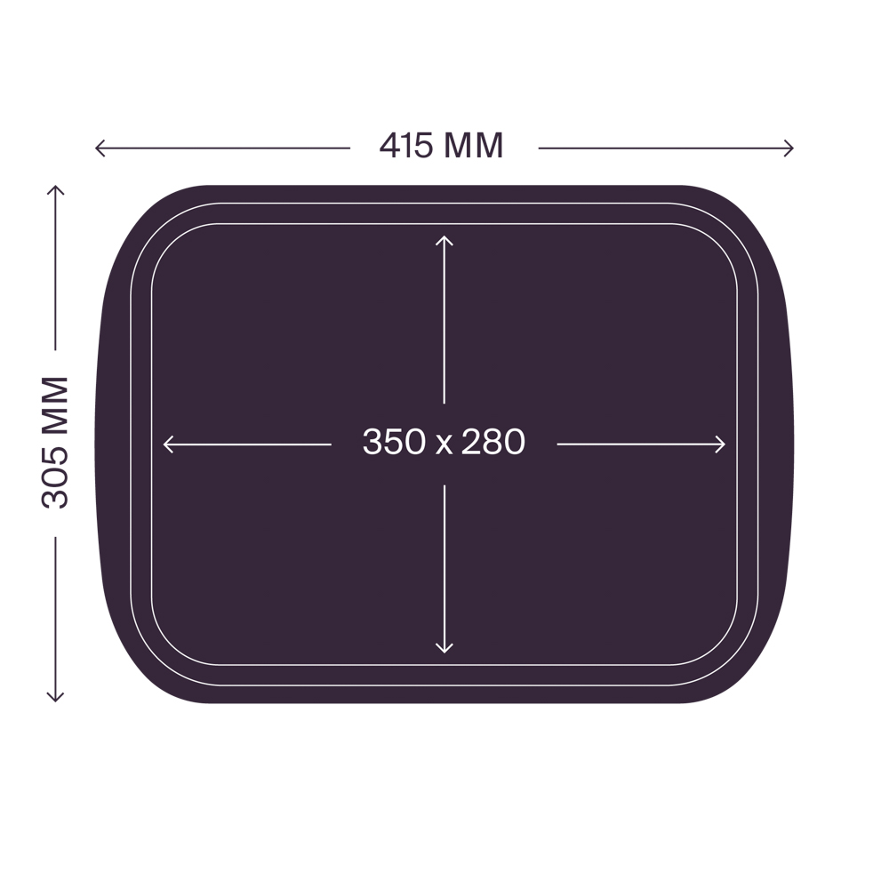 Универсальная модель из ассортимента подносов RESTOLA имеет внешние габариты 415х305 мм и габариты рабочей поверхности 350х280 мм.