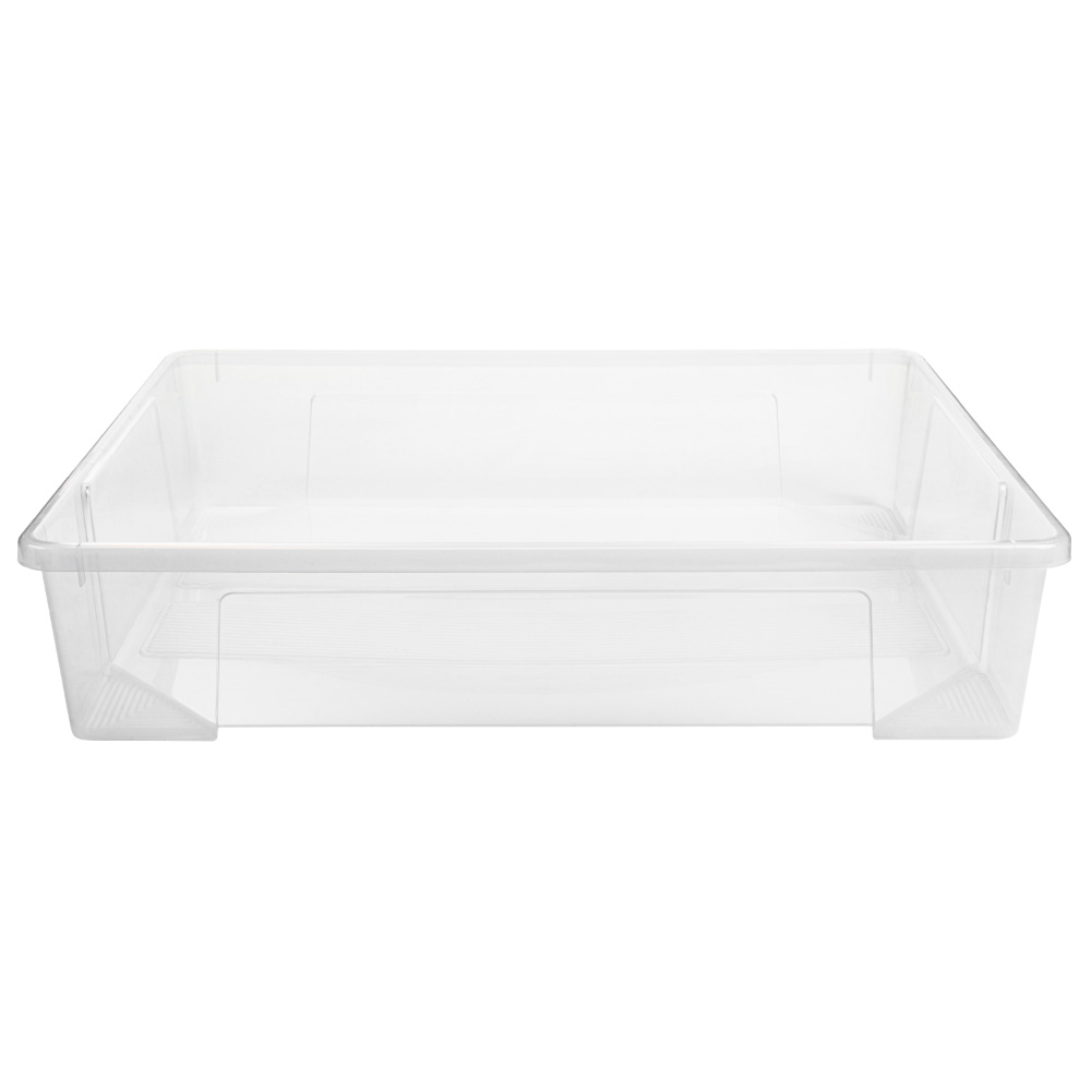 Через прозрачные стенки отлично видно содержимое для удобства эксплуатации ящика при размещении на полках, стеллажах, на складах.