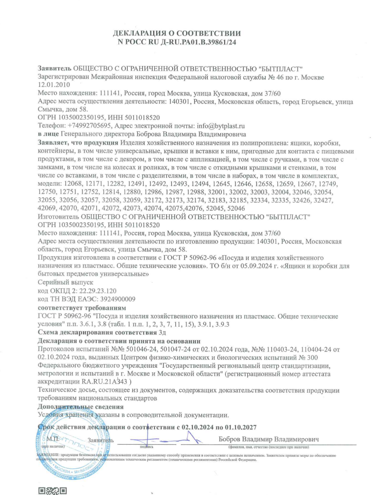 Декларация о соответствии РОСС RU Д-RU.РА01.В.39861 24 (ящики, коробки)