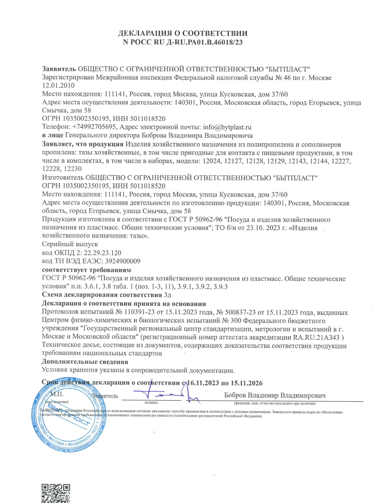 Декларация о соответствии РОСС RU Д-RU.РА01.В.46018 23 (тазы)