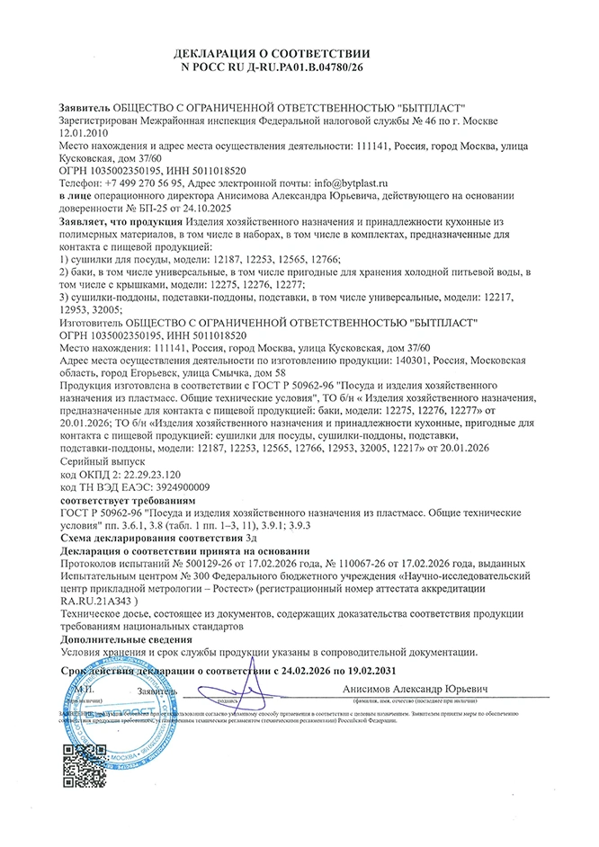 Декларация о соответствии РОСС RU Д-RU.РА01.В.04780/26